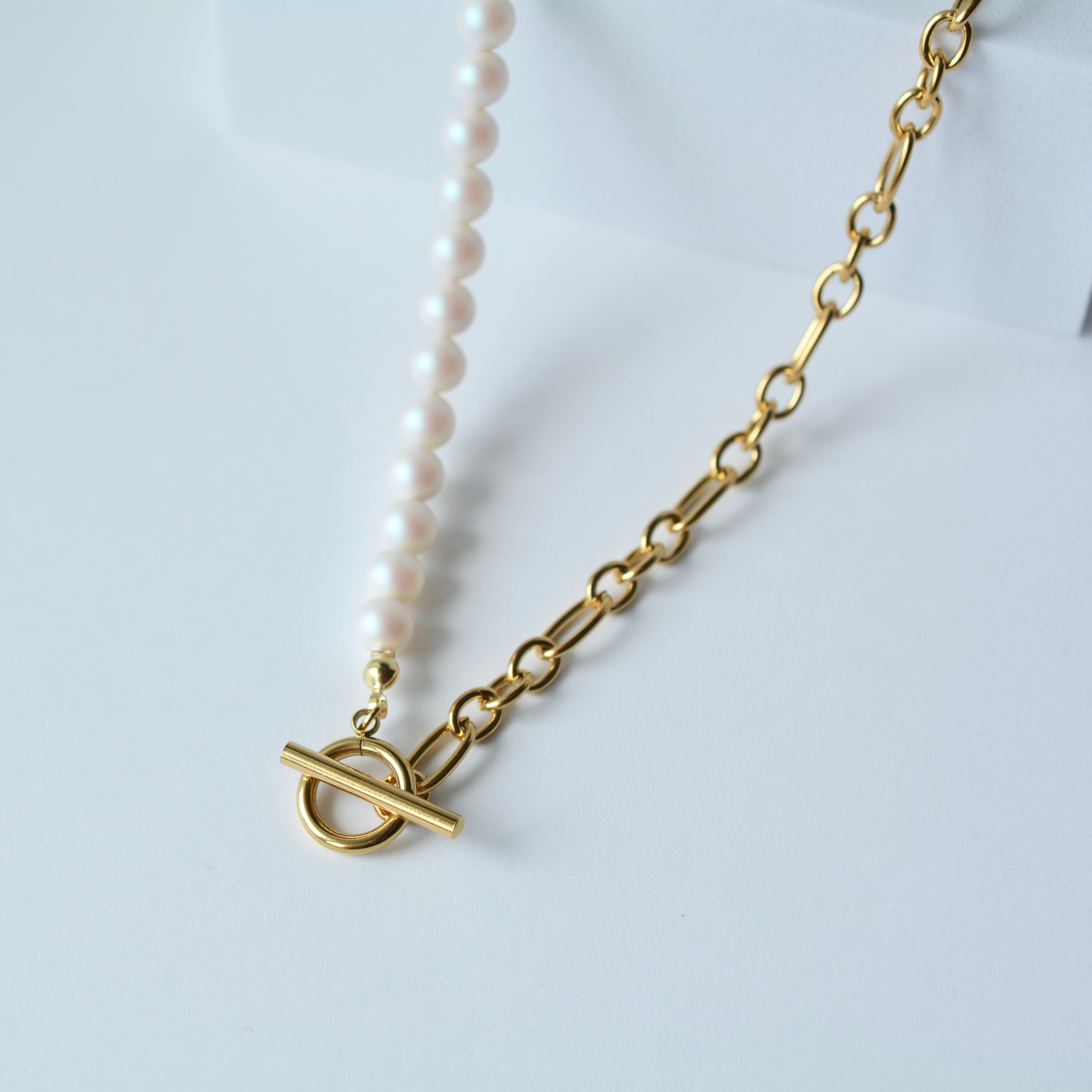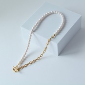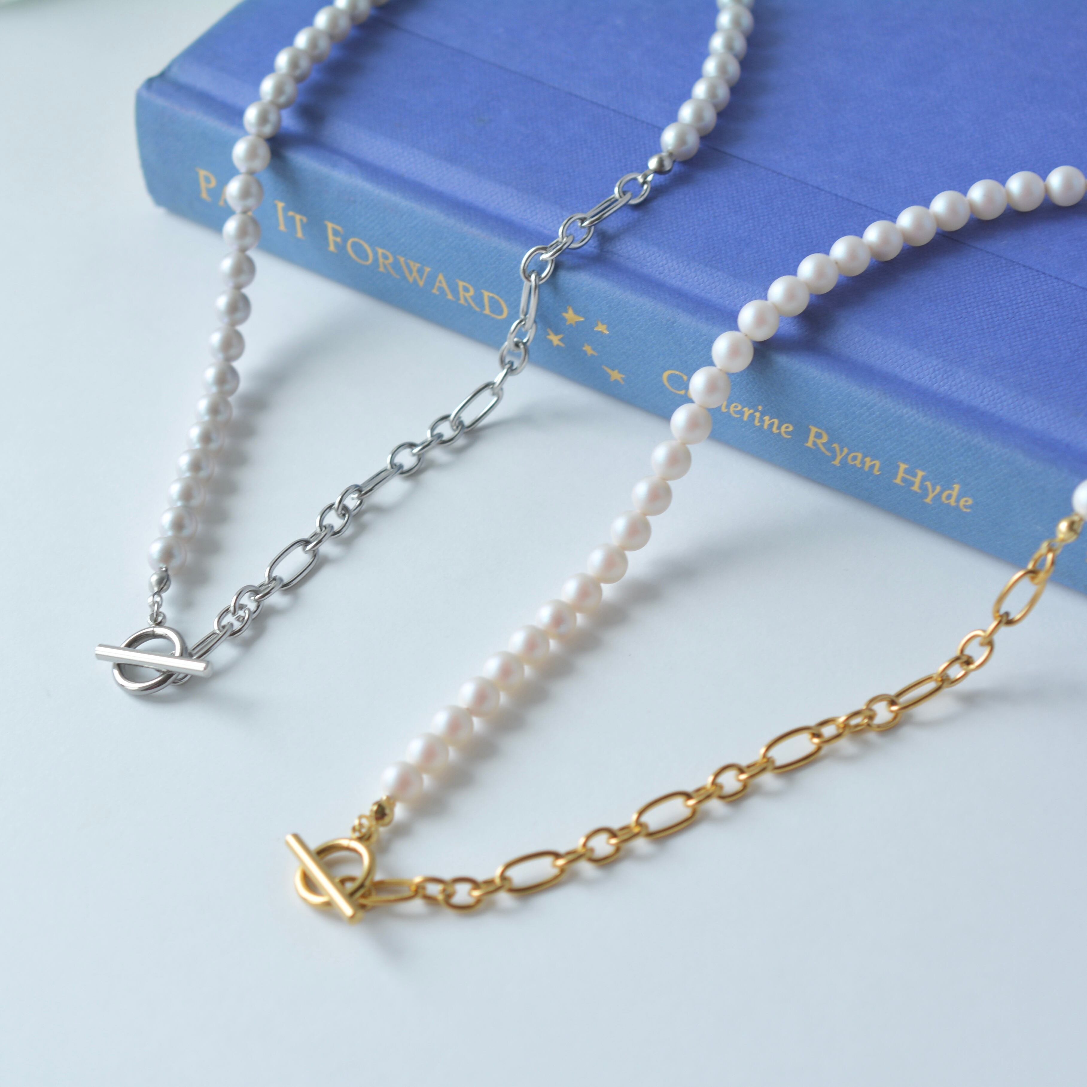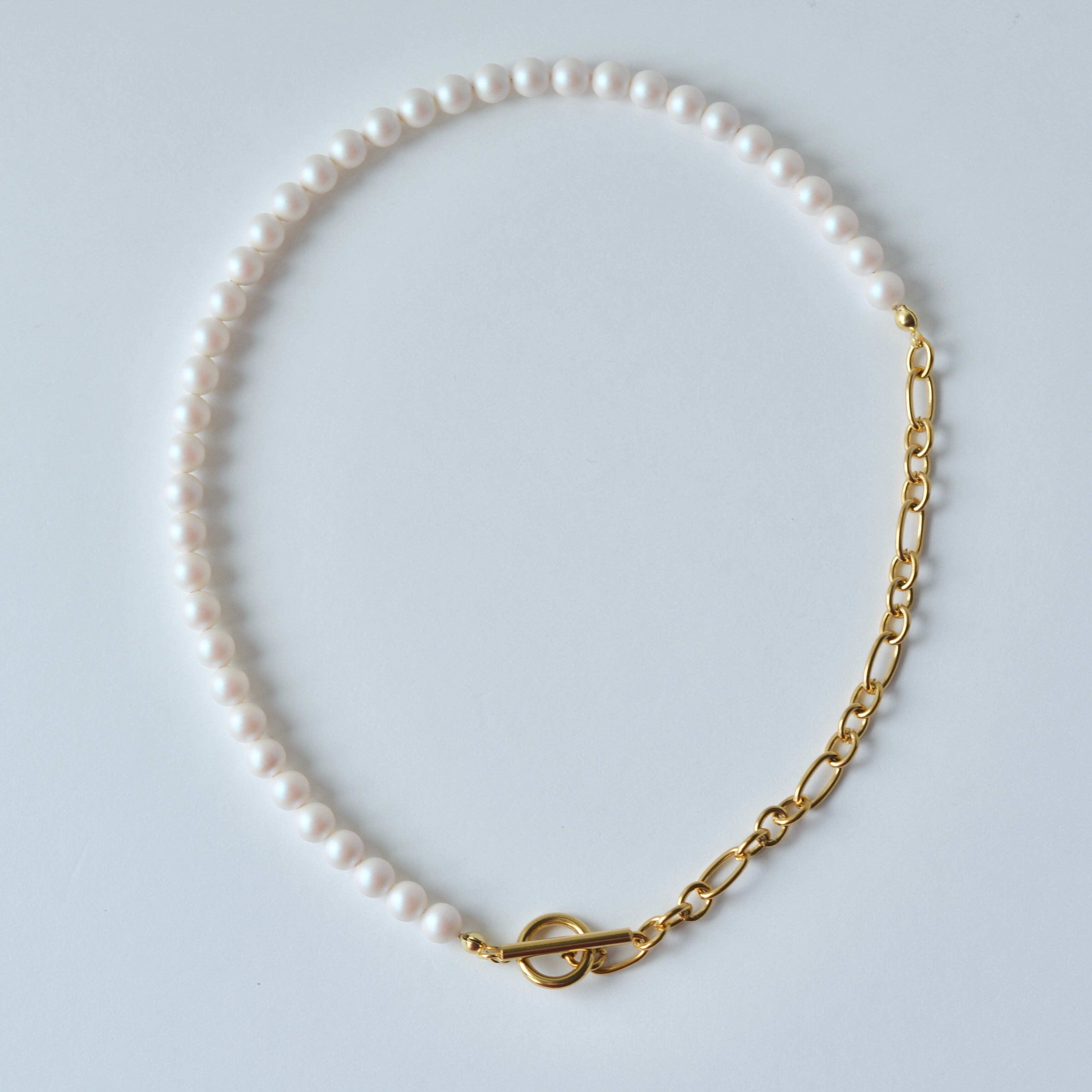クリスタルパールとサージカルステンレスのチェーンを合わせたネックレス