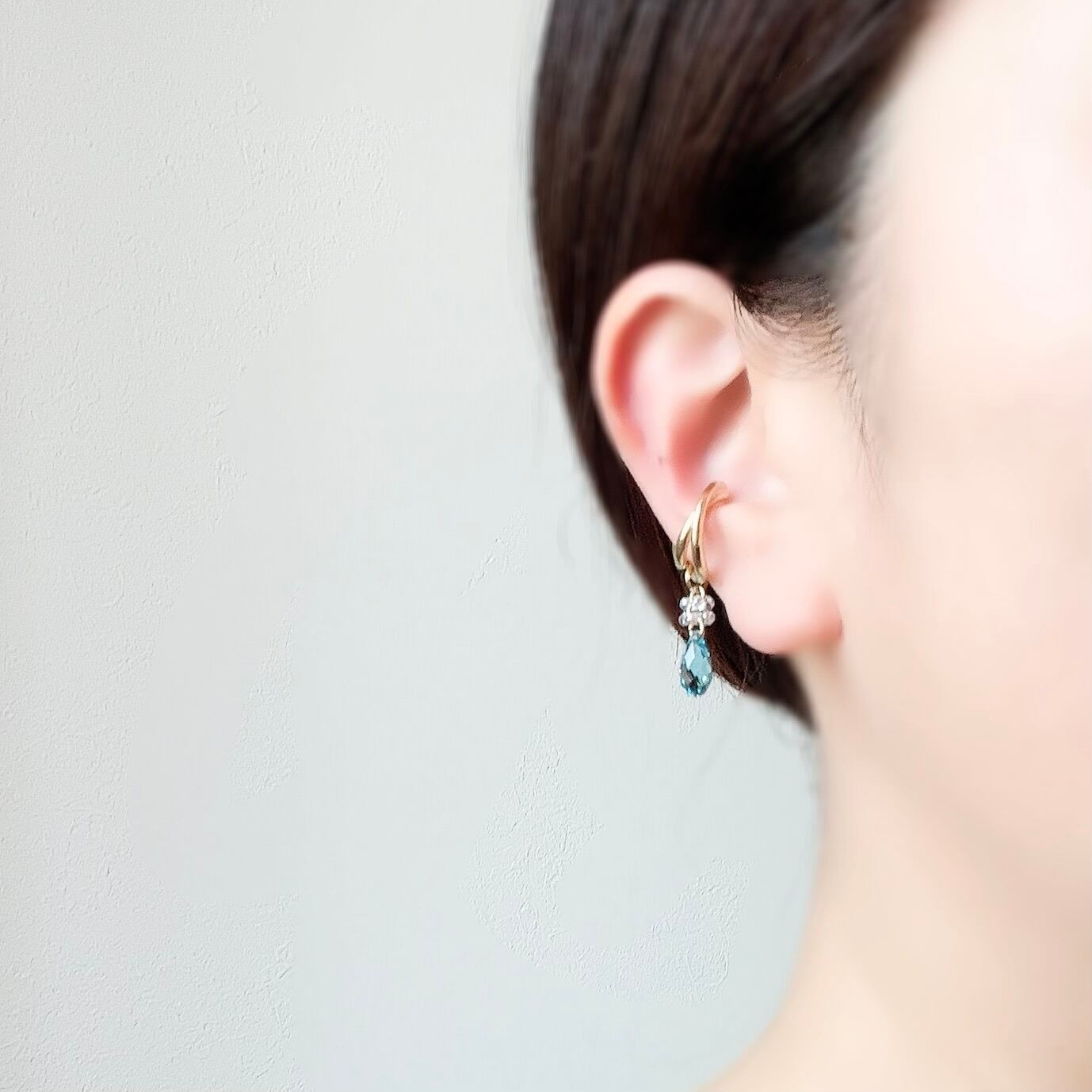 クリスタルイヤーカフ アクアマリン ゴールド