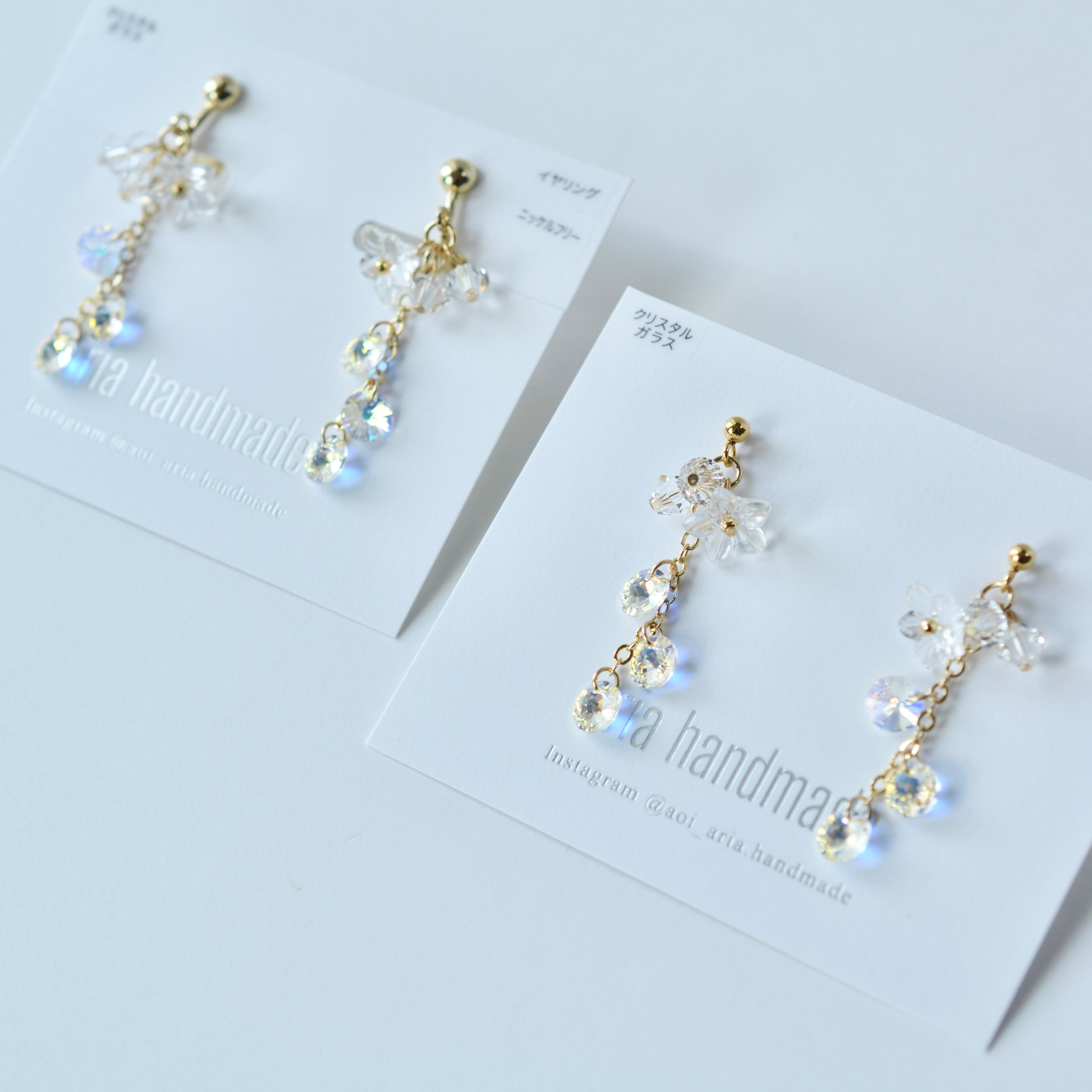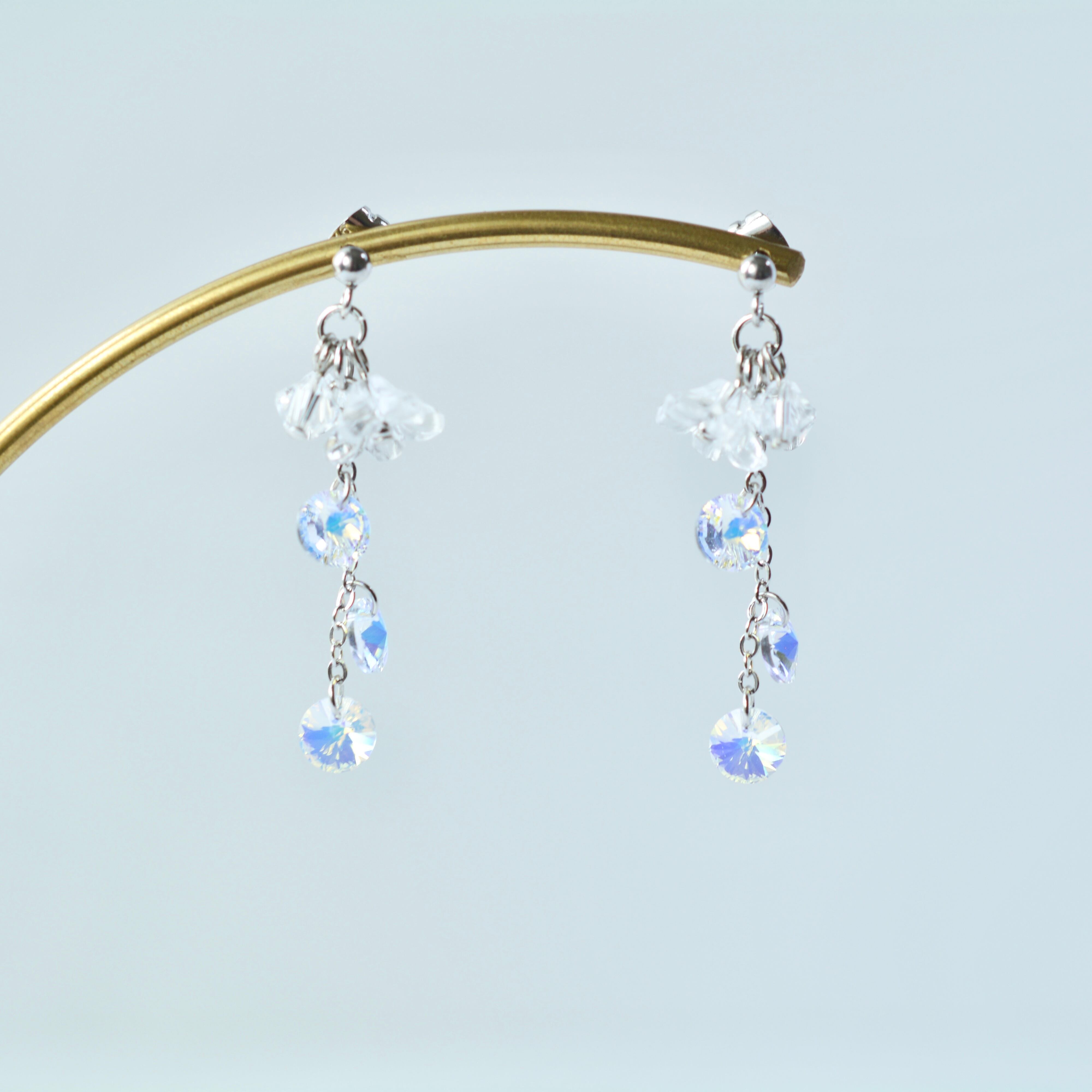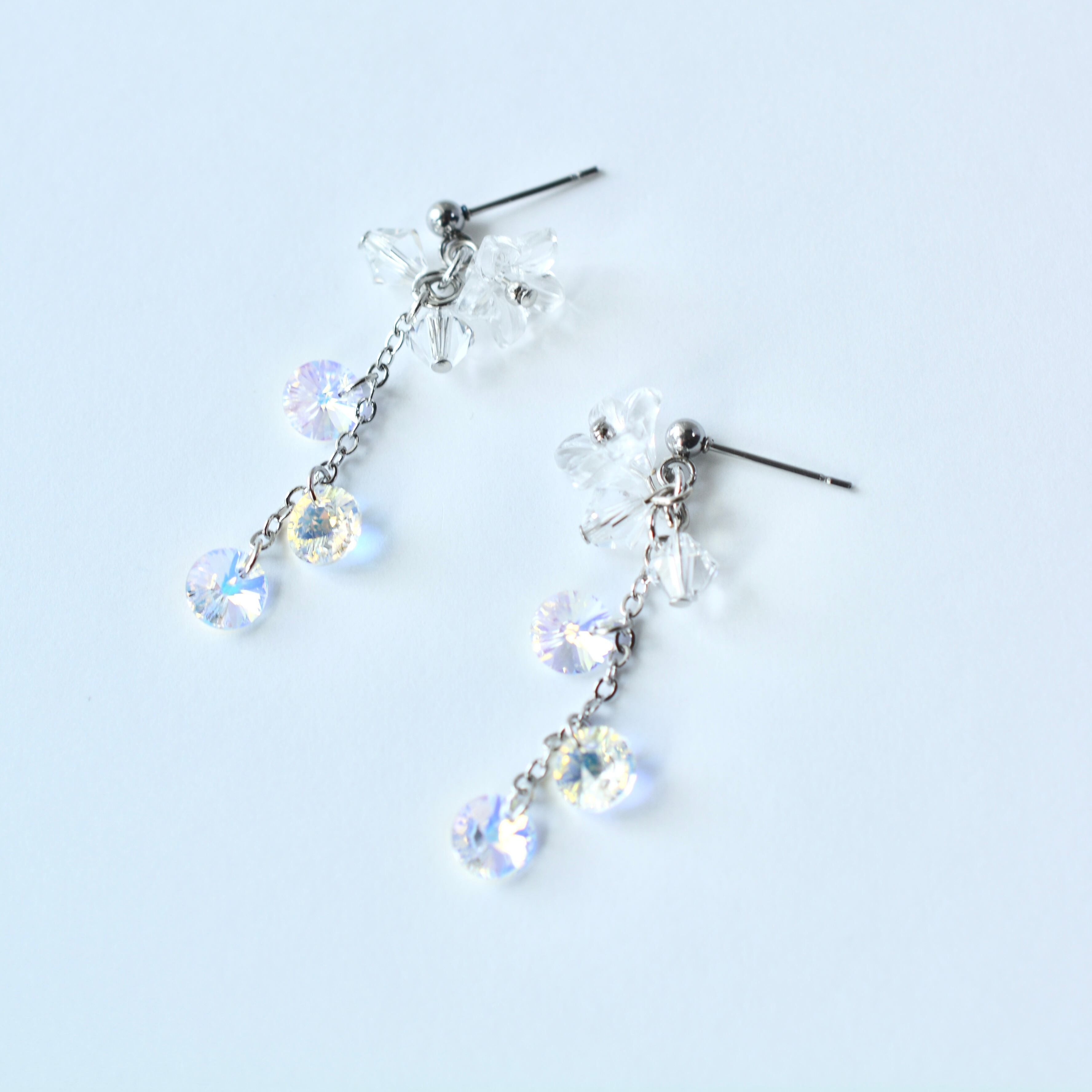 flower×オーロラクリスタル ピアス イヤリング
